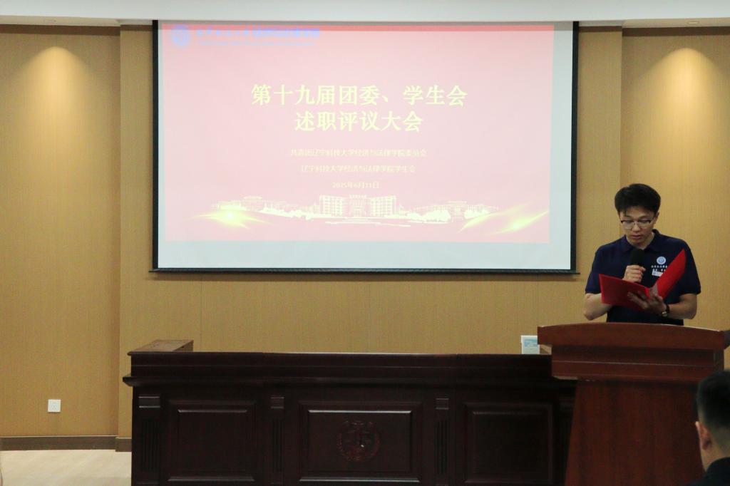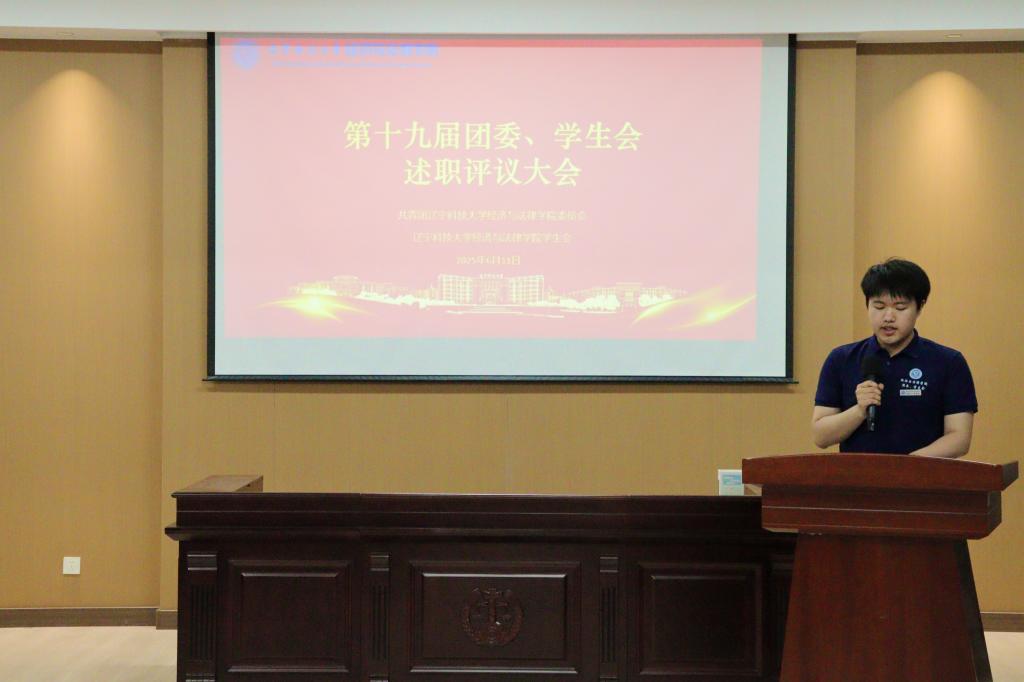 6月11日,经法学院于博识楼A402召开第十九届团委、学生会述职评议大会。本次会议由学院学生会执行主席兼办公室负责人赵心豪主持,学院团委副书记张鹏飞及全体团学骨干参加。