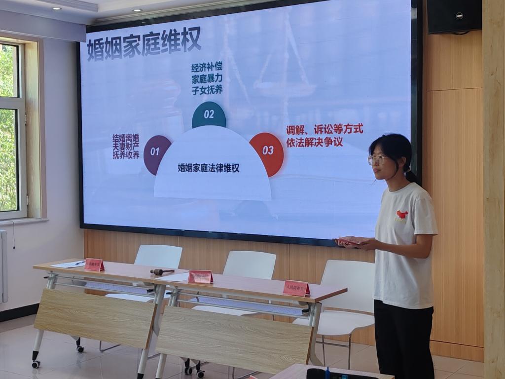 模拟庭审结束后,希冀法治宣讲团成员江川、吴欣悦围绕法律维权及未成年人保护进行了普法宣讲。通过本次宣讲,社区居民们不仅了解了相关法律条文,更重要的是学会了如何运用法律武器保护自己和他人,健全个人的法治意识与素养。