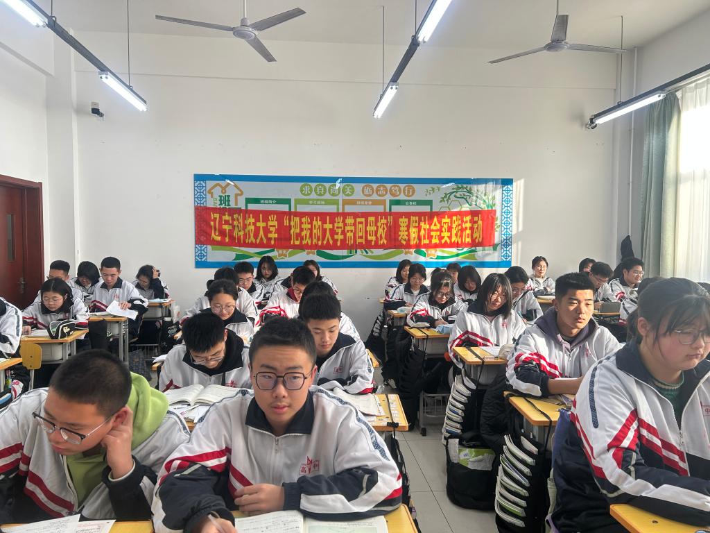 1月13日-1月25日,杜子俊、于子超、王美润、陈俊如、金玥汐5名团队成员分别前往衡水市第二中学、沈阳市第一二四中学、吉林市第一中学、凤城市第二中学以及兴城市高级中学,进行“把我的大学带回母校”寒假社会实践活动。