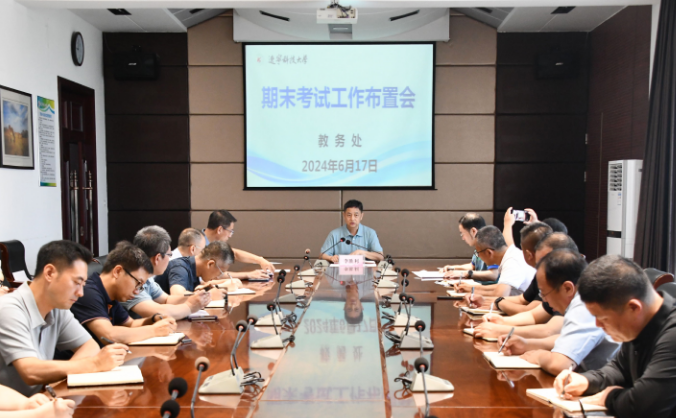6月17日,乐动在线下载(中国)召开期末考试工作布置会,会议在校部421会议室举行。校党委常委、副校长李胜利主持会议并讲话。教务处、教学质量监控与评估中心以及各教学单位教学工作负责人参加会议。