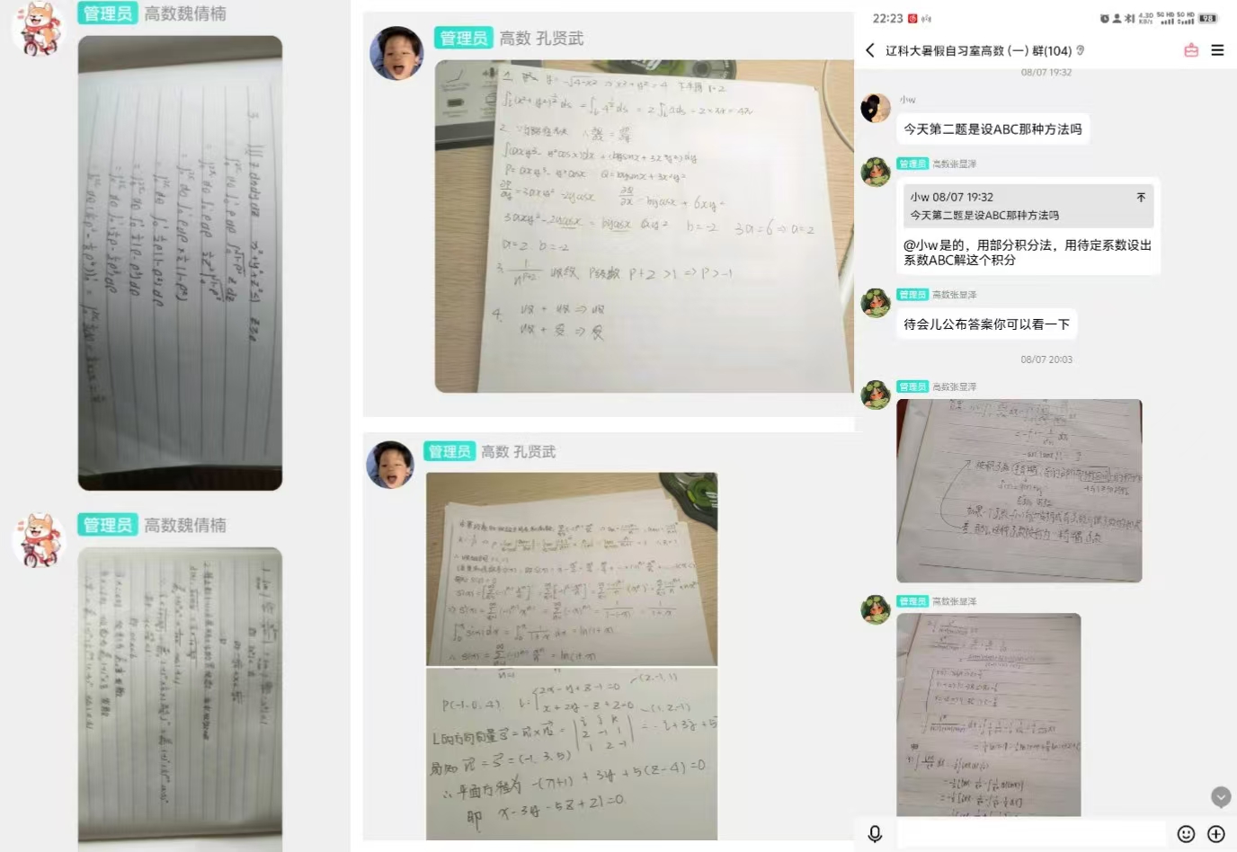 在帮助他人的过程中,学霸教员们也得到了锻炼和成长。教员周建宇说:“为期四周的自习室活动为我提供了一个跟大家分享学习经验与心得的平台,在这个过程中,我既实现了自我价值,又锻炼了自身能力。通过在线上授课,我能明显地感觉到自己的语言表达能力和逻辑思维能力有所提升,而且变得更加自信和从容。”教员魏倩楠说:“作为一名高数教员,与参加自习室的同学们一假期的相伴让我觉得非常充实。在准备授课内容的过程中,我不断地梳理所学知识,努力把自己对知识点的理解和学习方法转化成通俗易懂的语言,让同学们通过我的讲解能够有所收获;在与同学们沟通交流的过程中,我考虑问题的思路得到拓展,对高数知识的理解也进一步加深。”教员赵英辰说:“暑假自习室对于教员来说,既能夯实所学知识又能帮助到学习有困难的同学,一举两得!看到参加补考辅导的同学从最初的茫然无措到渐渐地思路清晰,从开始的畏难情绪严重到后来慢慢重拾信心,让我觉得所做的事情非常有意义。”
