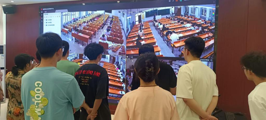 在期末考试周开始前,为持续强化我校学风、考风建设,更好地践行“尊重考试、敬畏考试、诚信考试、和谐考试”这一理念,教务处联合学生工作处、团委,开展了一系列活动,活动之一是组织学生参观学校监控指挥中心,活动由学生班级辅导员老师亲自带队,近距离感受全方位、高清监控下的标准化考场,将考风考纪教育推向深入,切实起到警示和震慑作用。前来参观的大一学生深有感触地说到:“第一次参观学校的监控指挥中心,看到这么清晰的监控画面,真是太震撼了,没想到我们在考场的一举一动,都能这么清晰地被看到。”一位大三的学生干部说:“回到班级,我得跟大家宣传一下,要认真复习、诚信考试,千万不能抱有任何侥幸心理。”