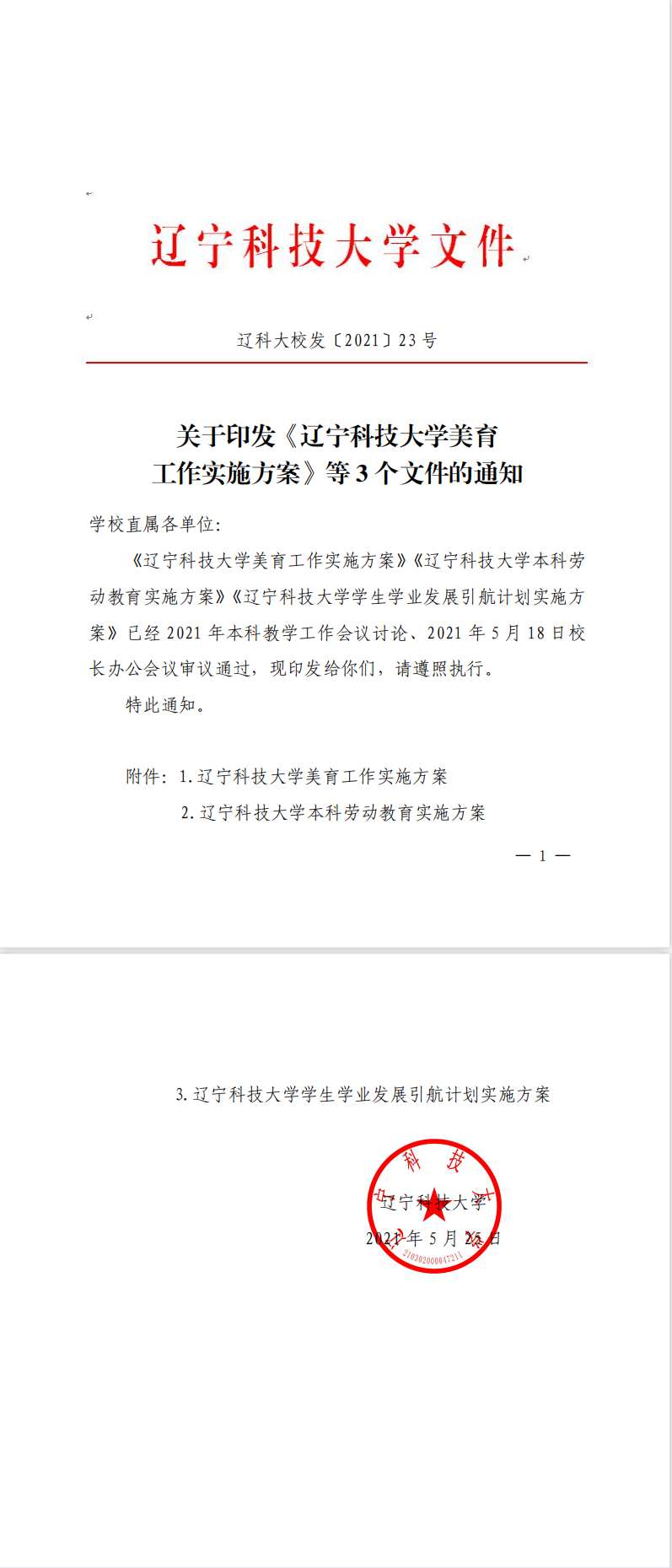 乐动在线下载(中国)校发〔2021〕23号:关于印发《乐动在线下载(中国)美育工作实施方案》等3个文件的通知