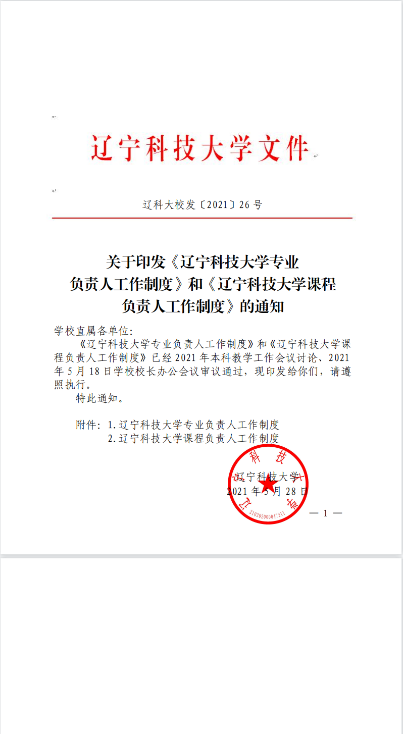 乐动在线下载(中国)校发〔2021〕26号:关于印发《乐动在线下载(中国)专业负责人工作制度》和《乐动在线下载(中国)课程负责人工作制度》的通知