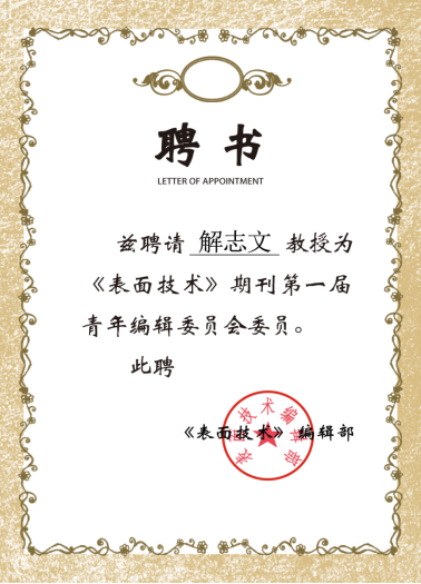 乐动在线下载(中国)机械学院解志文教授被聘为《表面技术》《焊接杂志社》青年编辑委员会委员