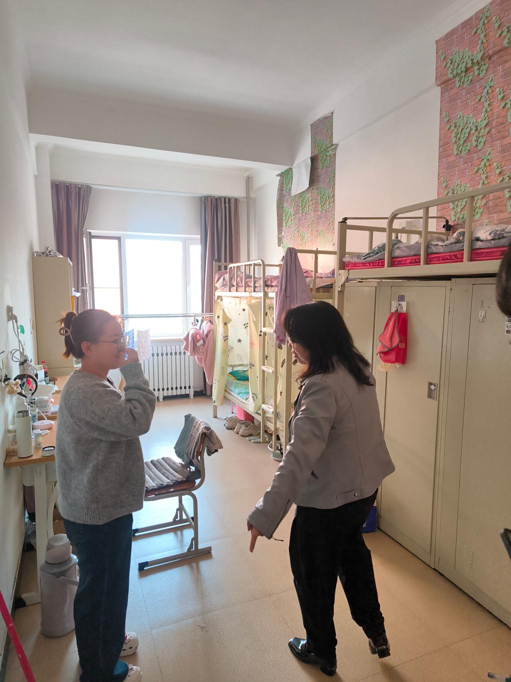 为了进一步落实安全措施,张春霞亲自带领研究生会的同学对各个寝室进行了卫生和用电安全的检查。在检查中,她对一些寝室保持良好卫生习惯和规范用电的同学表示赞赏,并鼓励他们继续保持。同时,对于一些存在安全隐患的寝室,她提出了整改建议,要求同学们及时处理电器故障,清理不必要的杂物,并要求制定寝室值日表,以确保宿舍环境的整洁和安全。