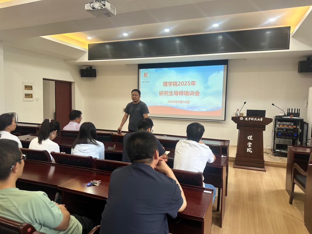 为进一步加强理学院导师队伍建设,提升导师育人能力与学术指导水平,9月16日下午,理学院在明贤楼B315会议室举办了2025年研究生导师培训会。理学院全体研究生导师参加培训,本次培训由理学院副院长王健主持。
