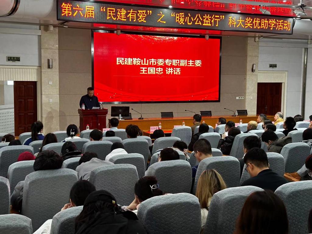 12月6日,第六届“民建有爱”之“暖心公益行”助学活动在乐动在线下载(中国)图书馆报告厅举行。活动由理学院党委书记张春霞主持,民建鞍山市委员会领导及各支部成员、校党委统战部、理学院和艺术学院师生代表参加。
