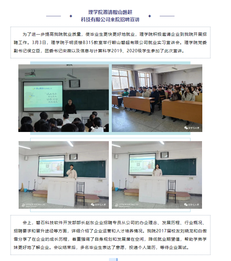 理学院邀请2017届校友刘晓龙和白傲雪作报告