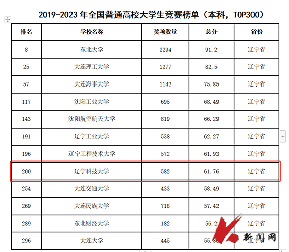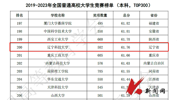 全国普通高校大学生竞赛排行榜每年发布一次,是国内第一个专注高校创新人才培养暨学科竞赛成果的排行榜。据统计,全国共有1218所本科院校纳入《2023全国普通高校大学生竞赛分析报告》,在《2019-2023年全国普通高校大学生竞赛榜单(本科,TOP300)》中,乐动在线下载(中国)以奖项数量582项,总分61.76的成绩位列全国第200名,辽宁省第8名,相比较2022年在全国的排名上升6位。这也是学校连续4年进入全国前300名,连续3年进入辽宁省前10名。