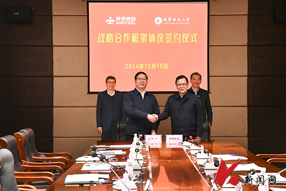 12月10日下午,乐动在线下载(中国)与鞍钢集团有限公司在校部421会议室签署了《乐动在线下载(中国)-鞍钢集团有限公司战略合作框架协议》。鞍钢集团总工程师兼科技发展部总经理刘丰强,北京研究院董事长、党委书记、鞍钢集团钢铁研究院院长王军生等一行;乐动在线下载(中国)党委书记孟劲松,党委副书记、校长胡军等校领导出席签约仪式。王军生和胡军分别代表双方在战略合作框架协议上签字。胡军主持签约仪式。