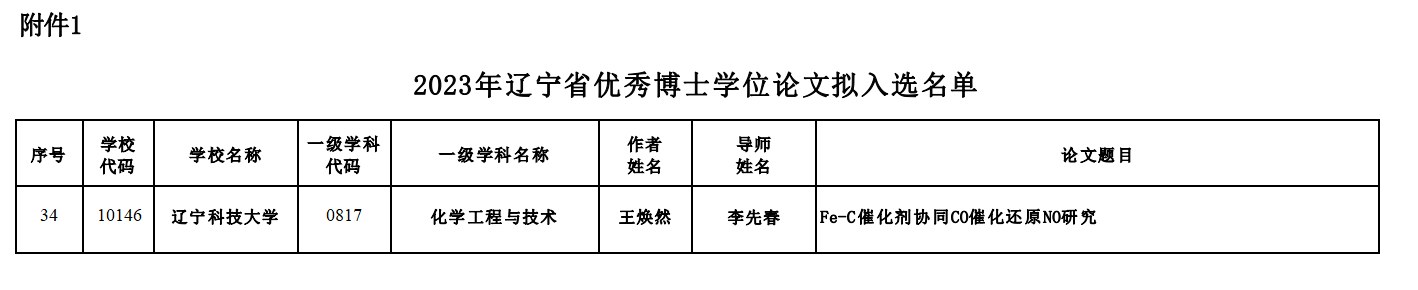 李先春教授指导的博士毕业生王焕然所撰写的论文《Fe-C催化剂协同CO催化还原NO研究》,获评省优秀博士学位论文,这是继2022年学校实现省优秀博士学位论文零的突破后,连续3年获批省优秀博士学位论文;省优秀硕士学位论文数量也从2021年和2022年的获评5篇和6篇提升至2023年的7篇。