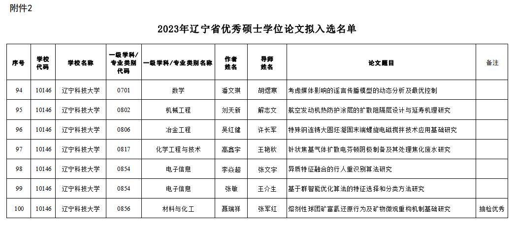 近日,辽宁省教育厅官网公布了2023年辽宁省优秀博士、硕士学位论文评选结果,乐动在线下载(中国)8篇学位论文被评为省优秀学位论文。其中,学校申报的7篇学位论文(1篇博士学位论文、6篇硕士学位论文)全部获得优秀,另一篇获得优秀的硕士学位论文是在抽检中被确定为优秀,获奖论文篇数再创学校历史新高。