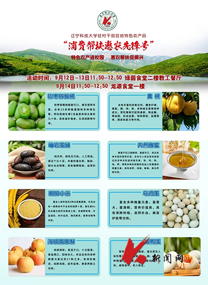 活动展销的优质特色农产品全部由学校驻村干部遴选推荐,包括海城南果梨、岫岩茧蛹、朝阳小米等8个有代表性的驻地特色农产品。活动由线上宣传、线下展销两个环节构成。组织部和驻村干部充分运用新媒体平台,共同策划制作特色农产品电子推荐手册、宣传视频等,通过校团委、各学院公众号进行线上宣传,累计浏览观看人数超过1万人次,极大地吸引了师生对优质特色农产品的关注与兴趣。线下展销期间,驻村干部与农产品产地学生推荐官相互配合,利用用餐高峰在学校食堂进行农产品展示和试吃交流,为师生介绍产品产地、食用方式、营养价值等信息,帮助师生近距离接触、品尝和选购味美价廉、品质上乘的特色农产品,更多了解省内各驻地农产品特色、地域特征和发展前景,实现“沉浸式”消费体验。师生络绎不绝,驻足交流品尝,累计参与人数近6000人,累计消费帮扶金额近24000元。