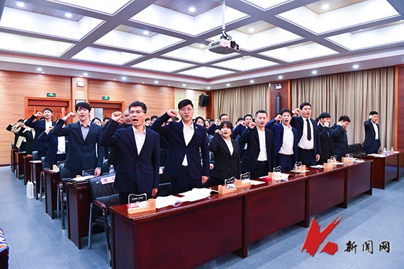 “我志愿成为一名光荣的人民教师,忠诚党的教育事业,遵守教育法律法规,传承弘扬教育家精神……”10月12日,在乐动在线下载(中国)2024年新教师岗前培训开班仪式上,75名新入职教师用铿锵有力的声音庄严宣誓,立志成为“四有”教师,为教育发展、国家繁荣和民族振兴努力奋斗。校党委常委、副校长李胜利出席开班仪式并讲话。教务处、宣传部、人事处、学生工作处、教学质量监控与评估中心负责人、指导教师代表参加开班仪式。与会领导为新入职教师颁发了校徽、校章、入职纪念摆件;为指导教师代表颁发聘书和鲜花。