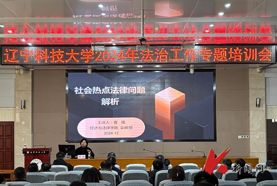 12月12日,乐动在线下载(中国)召开法治工作专题培训会,学校经济与法律学院副教授、鞍山市政府法律顾问、鞍山市人民政府行政复议咨询委员会咨询专家曹强应邀作专题培训。各学院分管科研、教学的副院长;各学院分管学生工作的副书记、学办主任、团委书记;机关各单位负责法治工作的副处长、合同归口管理人员;学校法律顾问、学校直属各单位法治工作联络员共100余人参加培训。