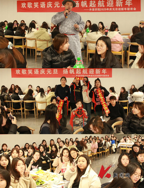 12月30日晚,乐动在线下载(中国)外国语学院在桃园餐厅举办“欢歌笑语庆元旦 扬帆起航迎新年”2025年庆元旦迎新年学生联欢会。学院辅导员、2023级和2024级全体同学参加活动。