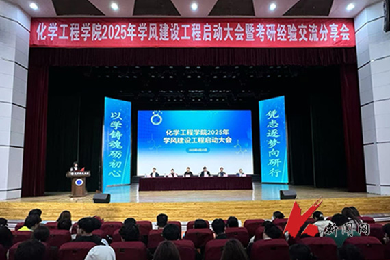 4月23日,乐动在线下载(中国)化学工程学院在校礼堂召开2025年学风建设工程启动大会暨考研经验交流分享会。学院相关负责同志、学生辅导员及2022级、2023级、2024级全体学生参加活动。