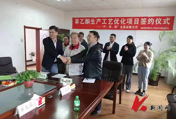 3月20日,乐动在线下载(中国)化学工程学院走访海城利奇碳材有限公司,并与顺意达技术咨询服务公司一道参加了“苯乙酮生产工艺优化升级项目”的签字仪式。
