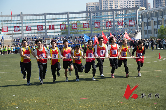 紧握着长杆,咬紧牙关,绕桩奔跑,尽力冲刺,呐喊着前进的口号,他们携手共进。