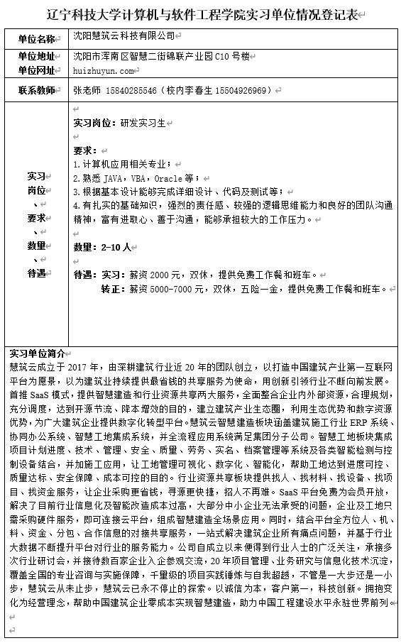 沈阳慧筑云科技有限公司招聘信息