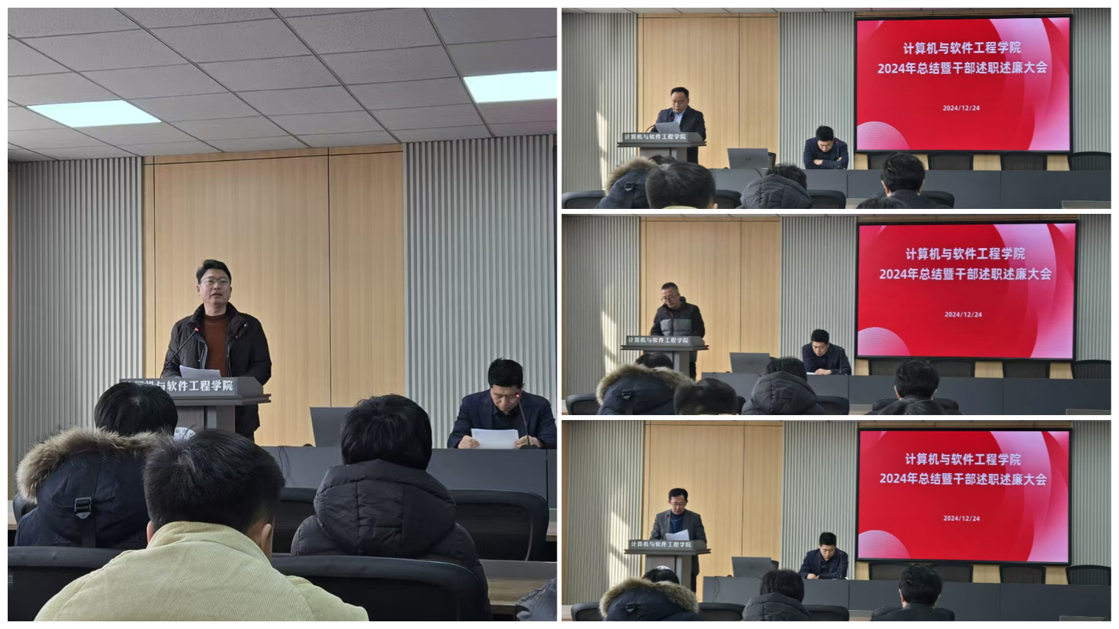 12月24日,计算机学院在博识楼B335大会议室召开2024年总结暨干部述职述廉大会,学院全体教职工参会。会议由学院党委书记陶润城主持。