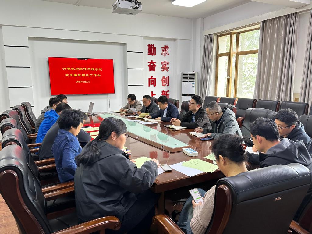 2025年4月22日,计算机学院党风廉政建设工作会在博识楼B327会议室召开,学院领导班子成员、科级以上干部、系(中心)主任、党支部书记参加会议,会议由院党委书记陶润城主持。