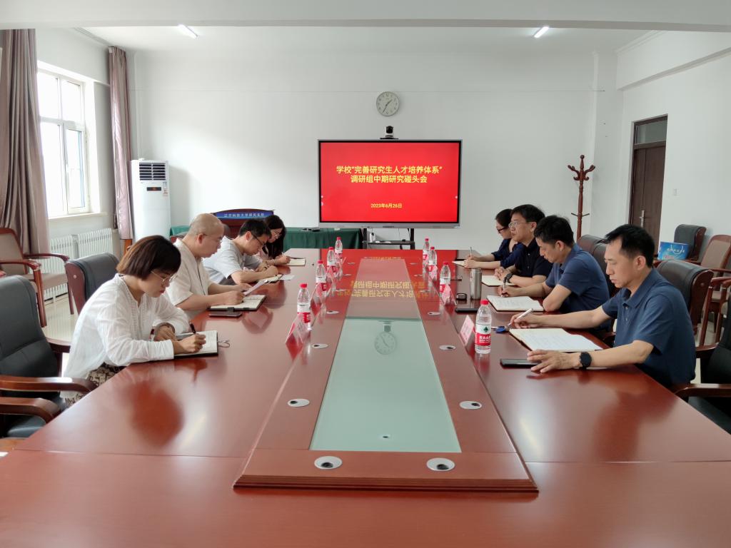 6月26日下午,“完善研究生人才培养体系”调研组在博远楼206会议室召开中期研究碰头会。校党委常委、副校长李胜利参加碰头会并讲话。研究生院(党委研究生工作部)领导班子成员及各科室科长参加会议。