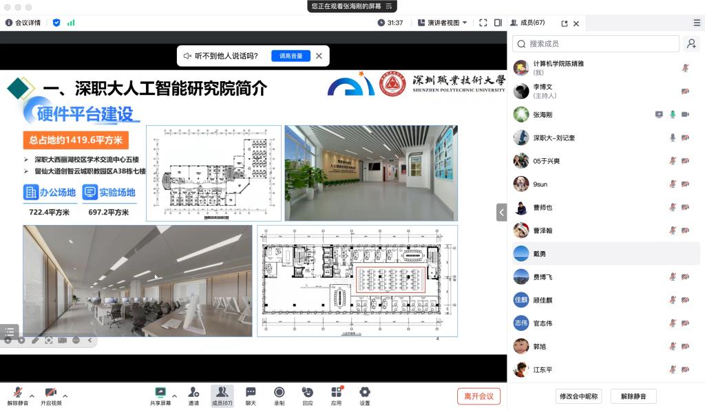 2025年1月10日,计算机与软件工程学院线上进行2025年计算机与软件工程学院与深圳职业技术大学研究生联合培养启动会。本次启动会由计算机学院副院长艾青主持,深职大智能科学与工程研究院院长卢山、深职大研究生导师、计算机学院研究生导师及2024级研究生参加了本次启动会。